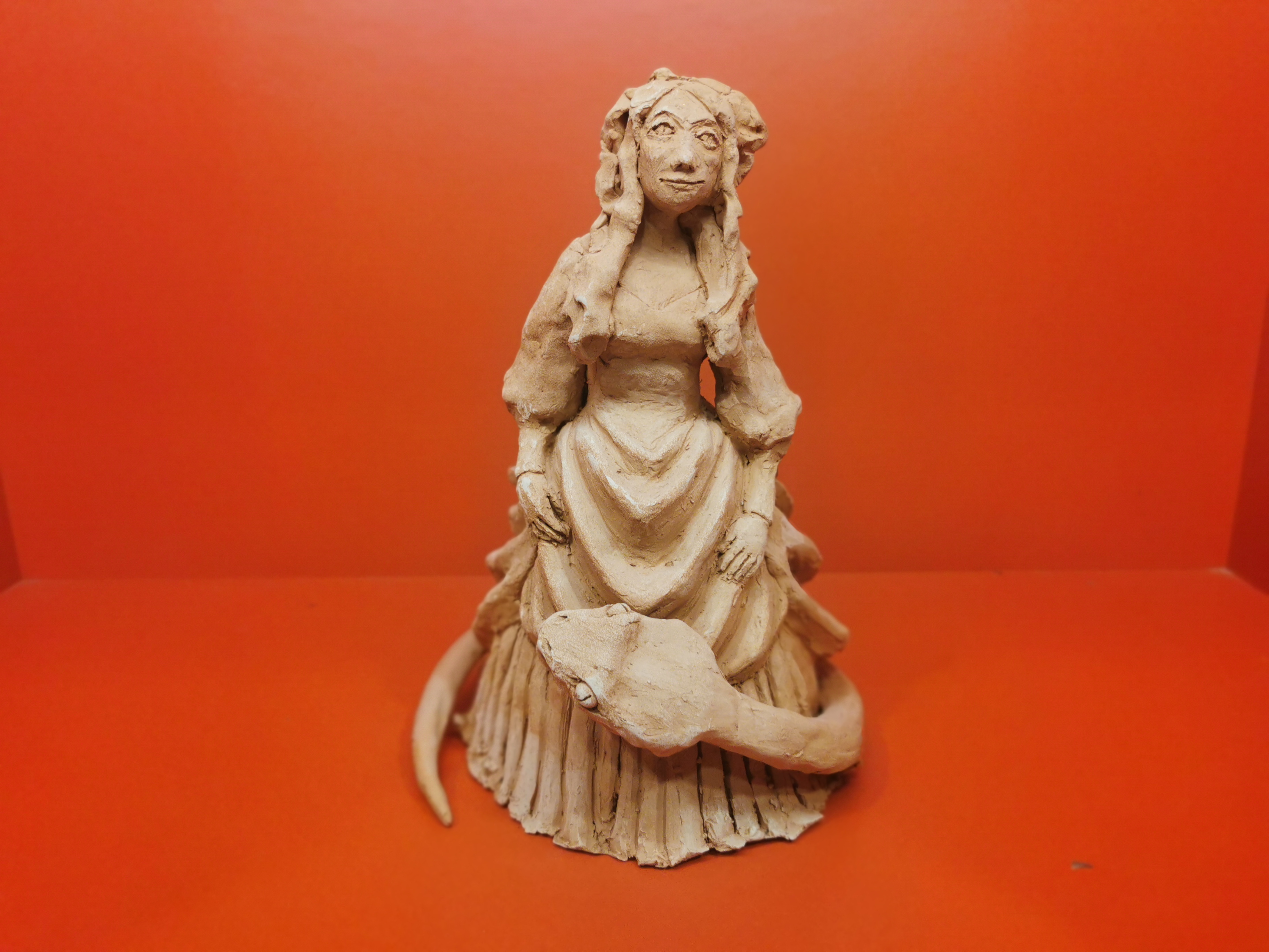 Statuetta di cm 30 per una circonferenza di cm 60 creata da uno studente dell'Istituto artistico 'Passaglia' con lo scopo di rappresentare una strega. Nel farlo si è basato su una storia raccontata a S.Romano di Garf.,dove si vedevano ballare le streghe nude e dove vedevano passare un 'biscio' nero con gli occhi gialli.